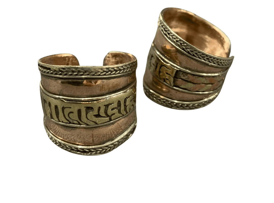 Anillo de bronce hecho a mano por artesanos nepalíes, diseñado con un acabado adaptable que permite ajustar el tamaño fácilmente sin perder resistencia. Su brillo cálido y su estilo tradicional lo convierten en una pieza versátil, perfecta para uso diario o como detalle cultural único.