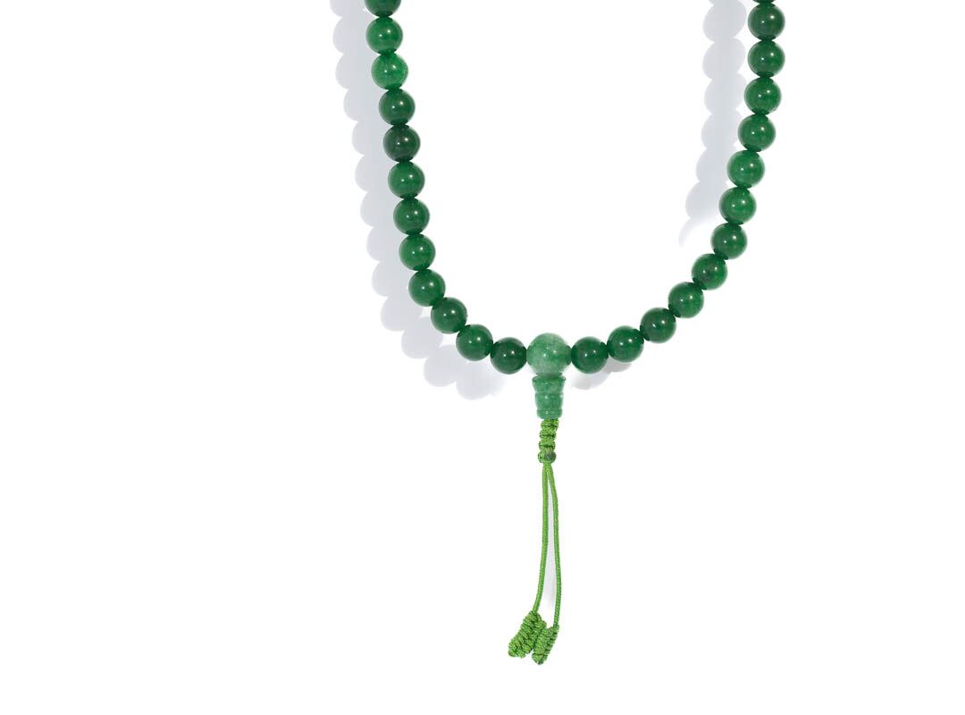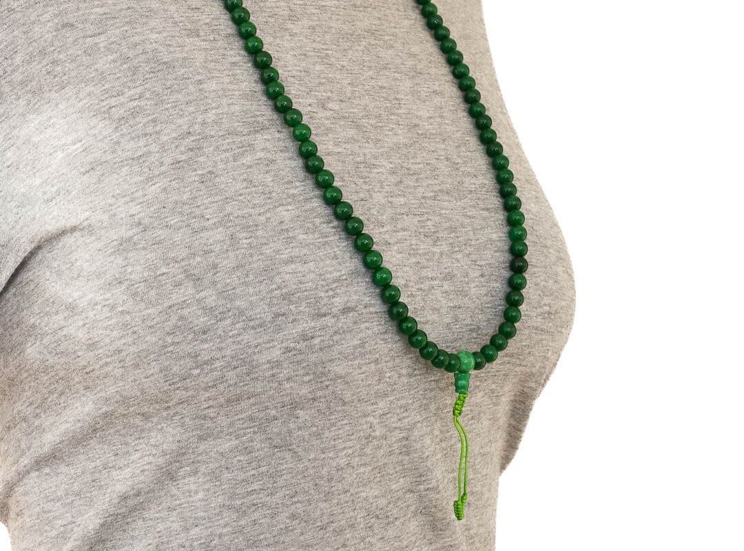 Descubre el Mala con cuentas de malaquita. Una pieza artesanal hecha con piedra malaquita natural cuidadosamente seleccionadas para potenciar tu energía y acompañarte en tu práctica de meditación, yoga o mindfulness o simplemente en tu outfit.